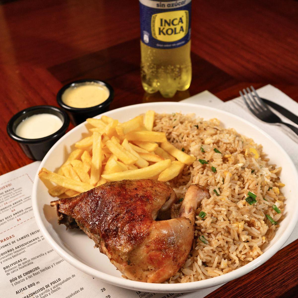 Pollos a la brasa con arroz chaufa, aeropuertos o gaseosas (imagen referencial) 25min