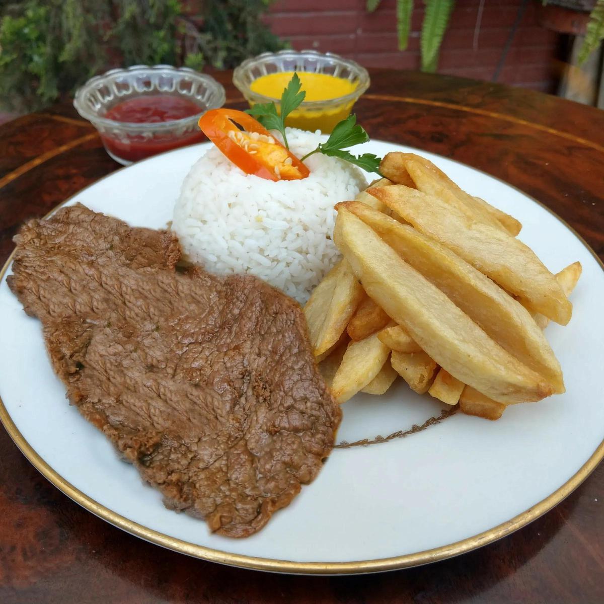 Bistec con papas y arroz (imagen referencial) 20-25min