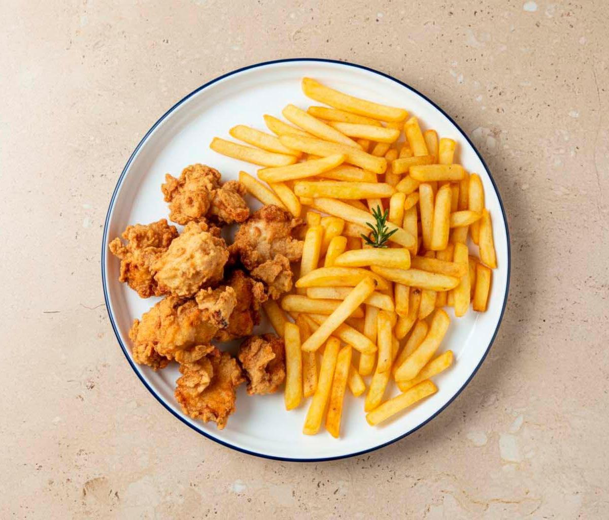 Chicharrón de Pollo con papas y arroz (imagen referencial) 20-25min